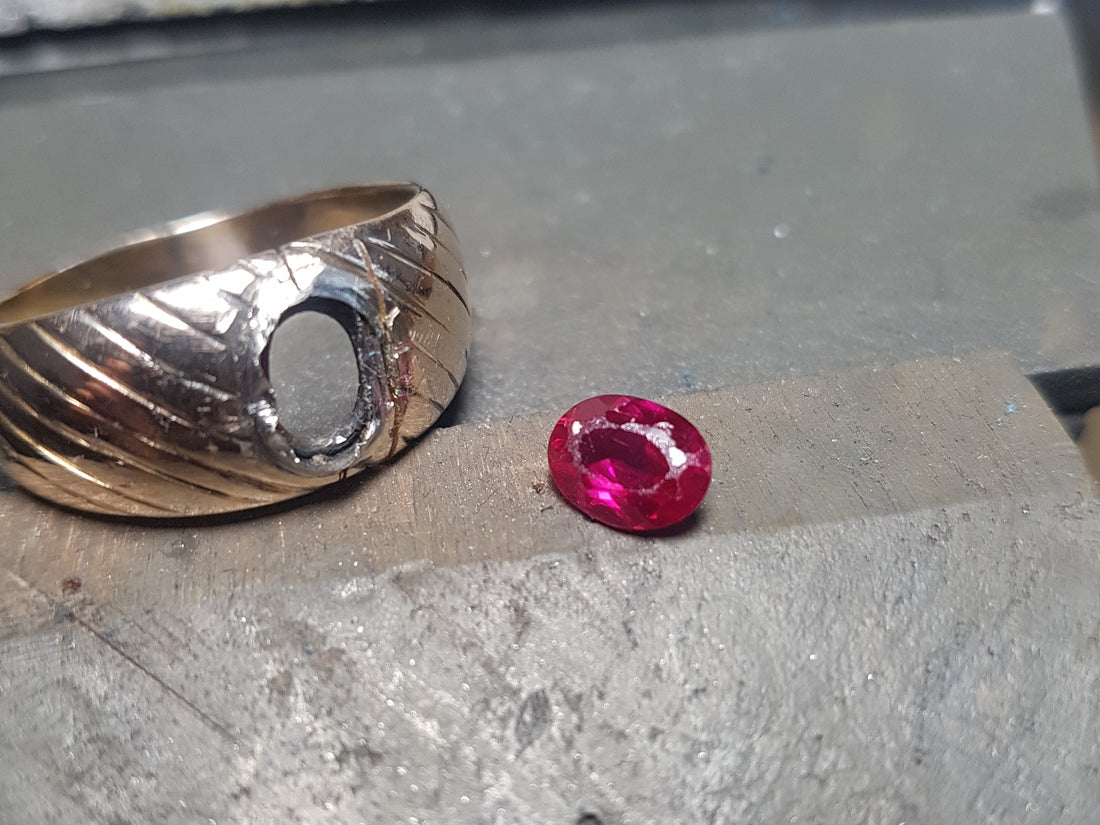 In the last few months I have been commissioned to re-work several pieces of heirloom jewellery. The most recent an inherited gold ring with a Rubelite stone. The ring had belonged to the customers father who had worn all the time. After inheriting the ring it was stored in a drawer for many years and not worn. The customer was looking to incorporate some of the gold from his fathers ring with his own wedding ring.