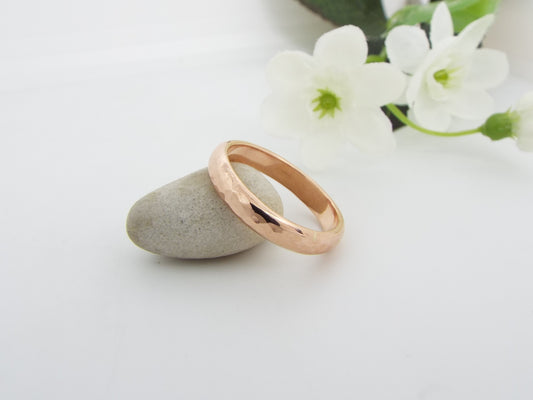 9ct Rose Gold Wedding Ring - Hammered finish - slim