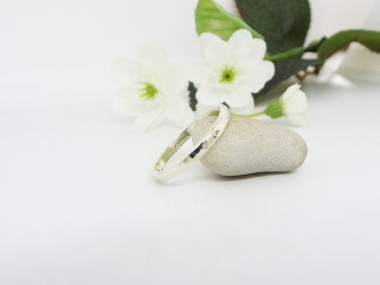 9ct White Gold Handmade Wedding Ring - Hammered - Slim
