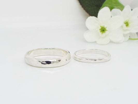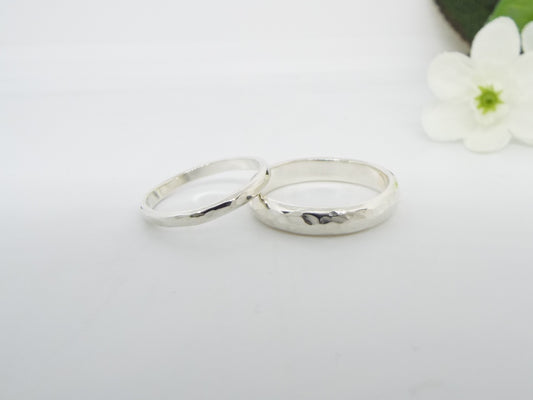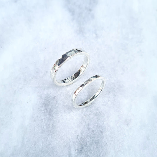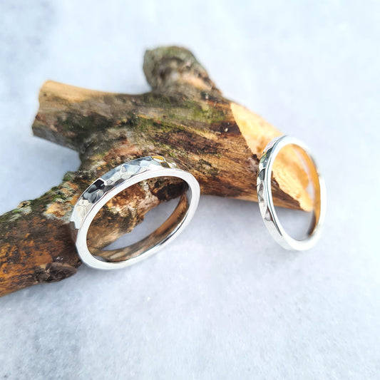 Silver Ring Set Flat profile - Hammered finish