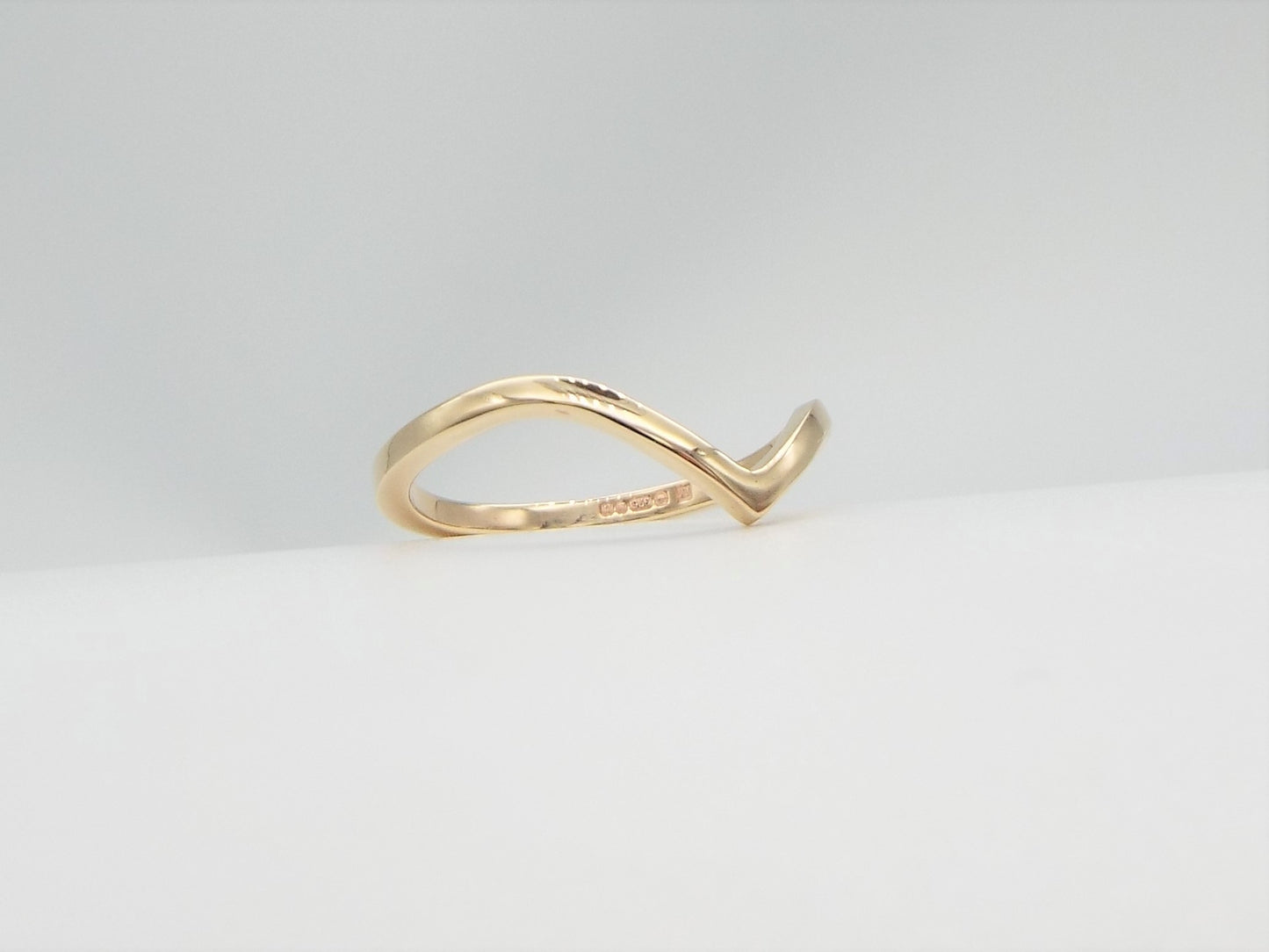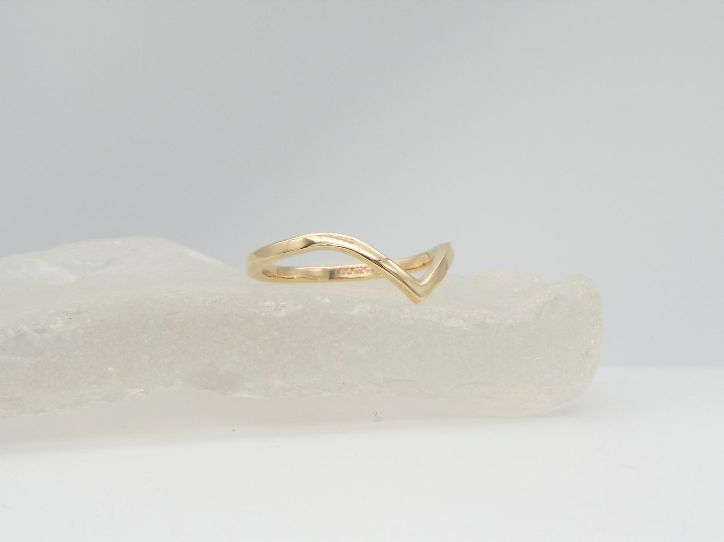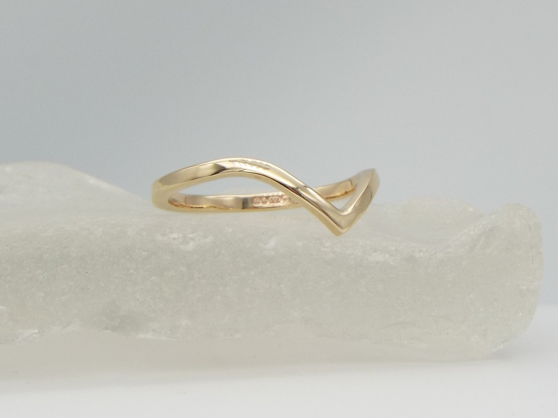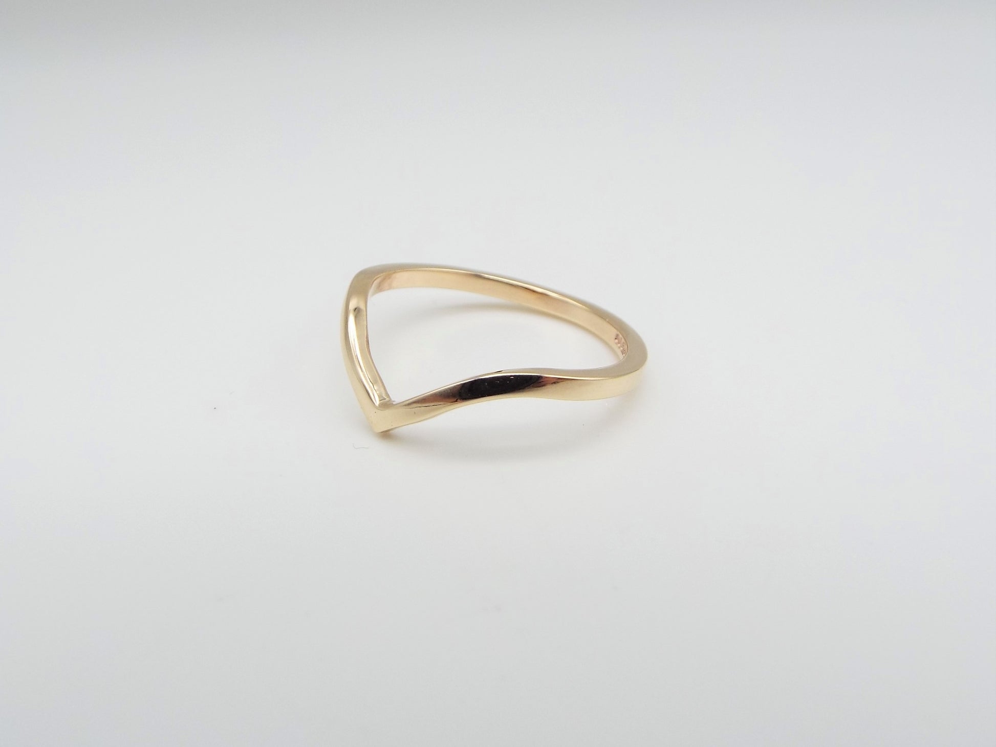 This unusual 9ct Gold Chevron Ring is handmade from 9ct yellow gold. The geometric chevron design adds detail and edge to the ring. Yellow gold has lovely tones and the slim band ring has a shiny polished finish.