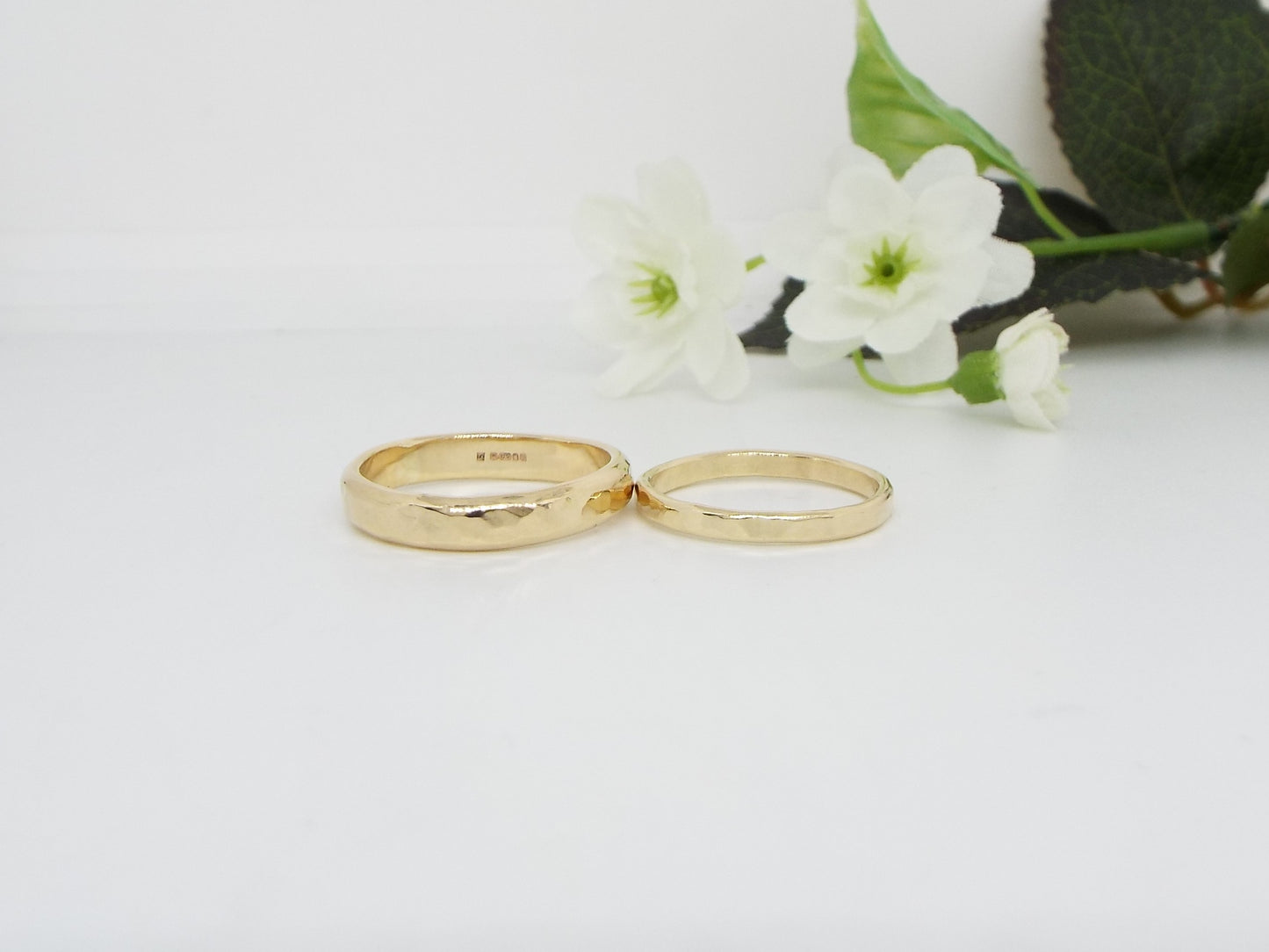 The rings have a hammered and polished finish and are hallmarked 375 9ct gold by the Edinburgh assay office and with my own makers' mark.
