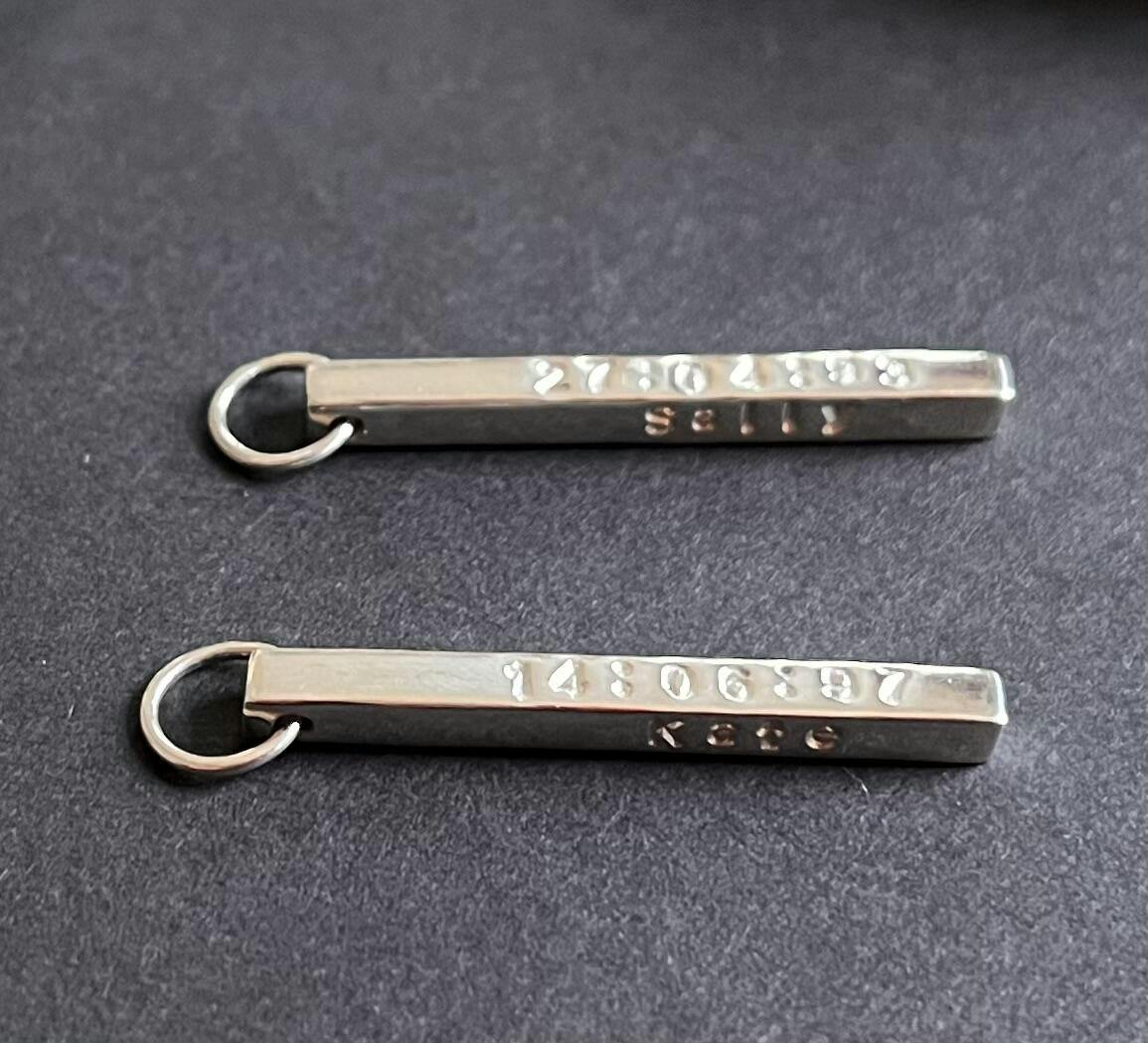 The lettering is stamped horizontally along the bar, please let me know if you would like it to run vertically. Stamping is done by hand so the letter spacing can vary. I can stamp capital and lower case letters, numbers, basic punctuation and have a little heart stamp. I can stamp up to 12 characters including spaces on each side.
