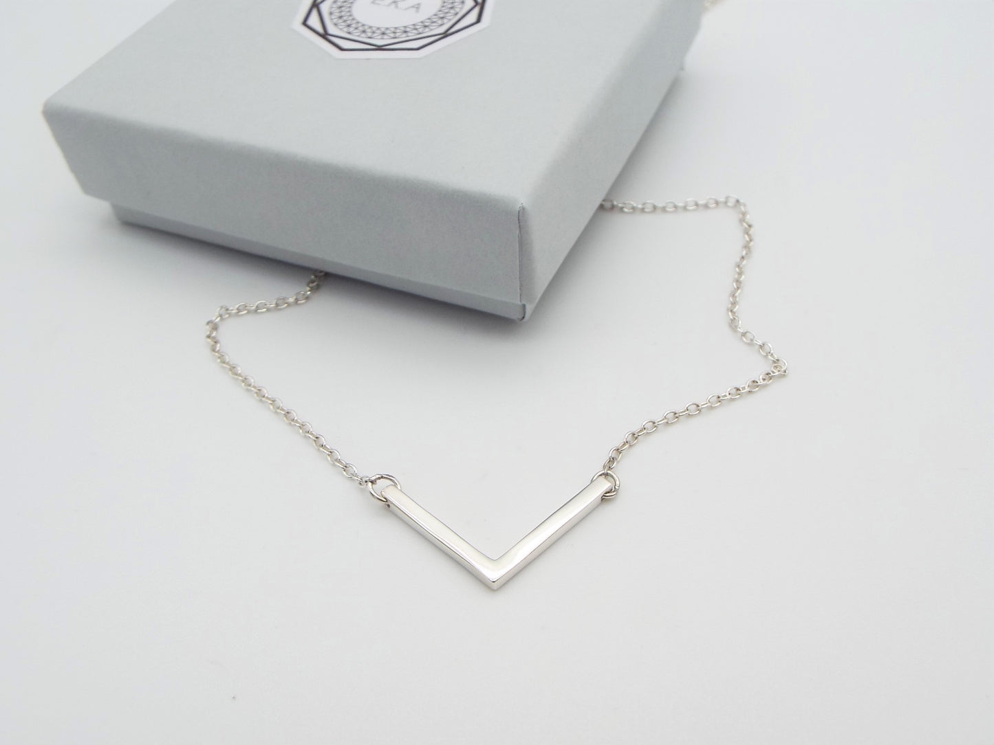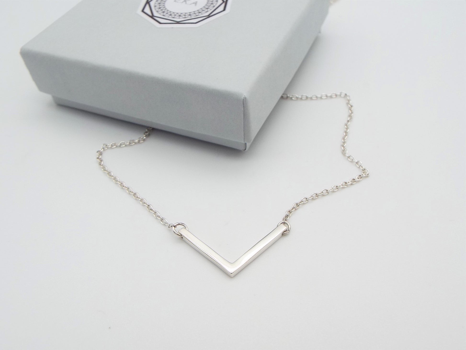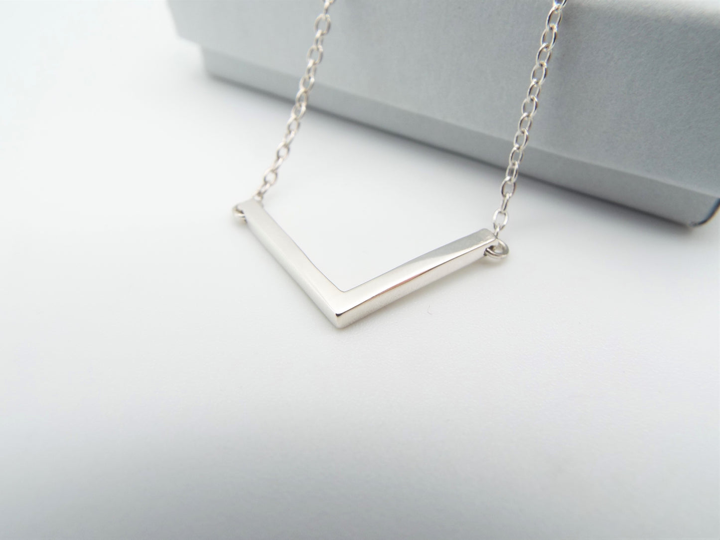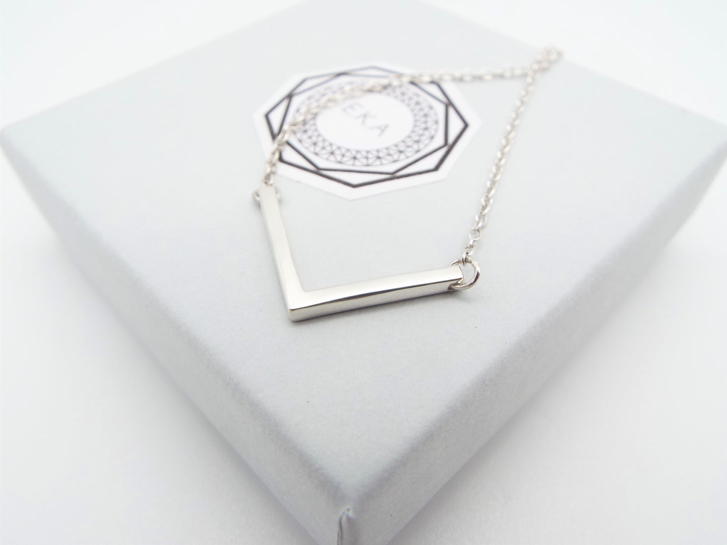 This V bar necklace is handmade from 2mm square sterling silver wire. It is polished to have a nice shine and adds simple sparkle. The design is sleek and modern, simply beautiful.